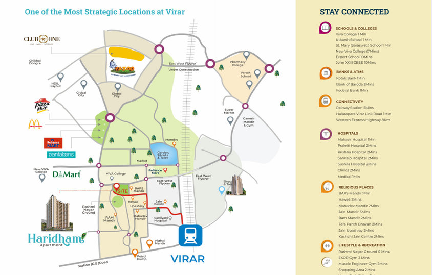 Haridham Apartment is a residential project in a prime location in Virar. The project is designed with a focus on "City Centric Living" and is a "Gateway to Bliss". It is a VVCMC-approved and MahaRERA registered project with the number P99000055379. The building has been designed with a thoughtfully crafted architecture and an aesthetically pleasing elevation.